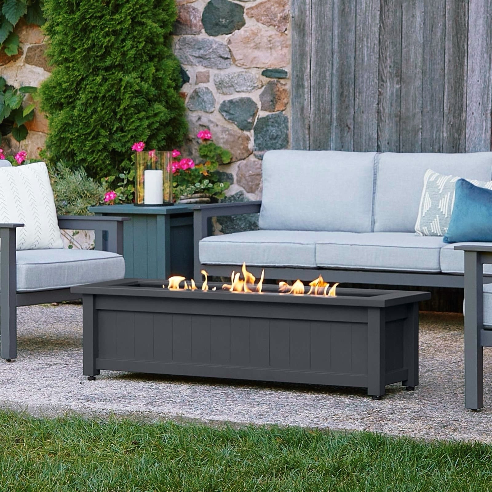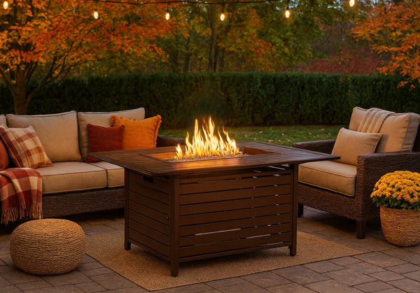 Aluminum 48-in Rectangular Propane Fire Table, Beads, Covers and Lid