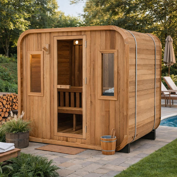 Redwood Outdoors Cabin Outdoor Sauna - 4 Person w/ Harvia KIP 8kW Heater