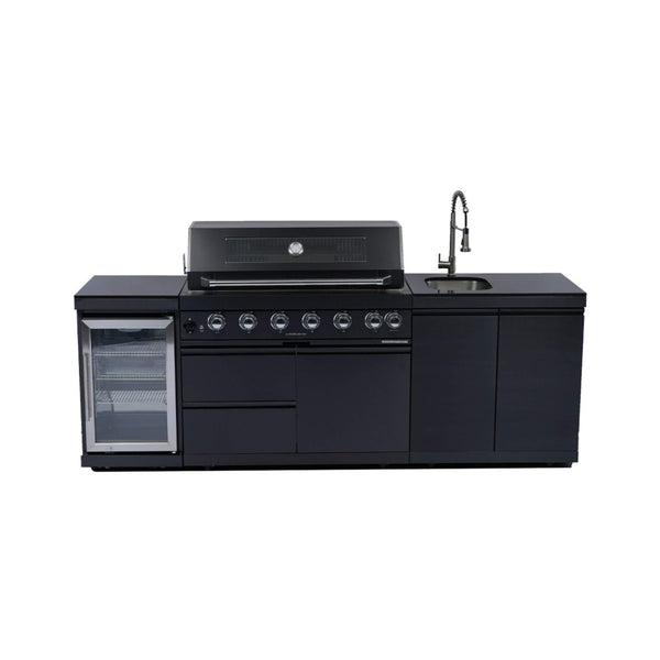 Castelle Flame Granite Outdoor BBQ Kitchen Island With 43-Inch 6-Burner Gas Grill, Rotisserie Kit, Cabinets, And Sink (SAK73518)
