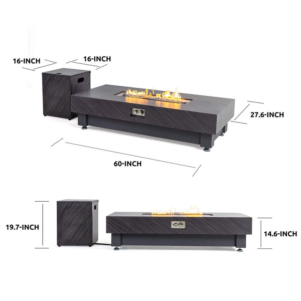 Alora Premium 60-Inch Rectangular Outdoor Modern Propane Fire Pit Table With Rain Cover (SAK91273)