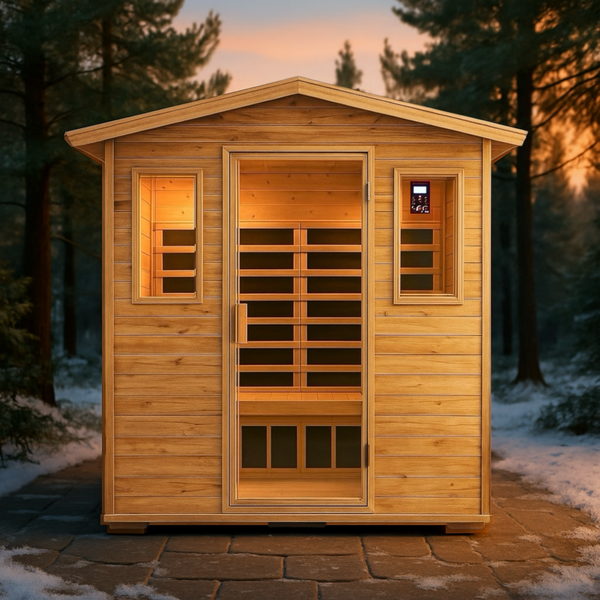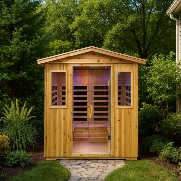 Deluxe 4-Person Outdoor Infrared Hemlock Sauna With Bluetooth Speakers & LED Lighting (SAK96371)