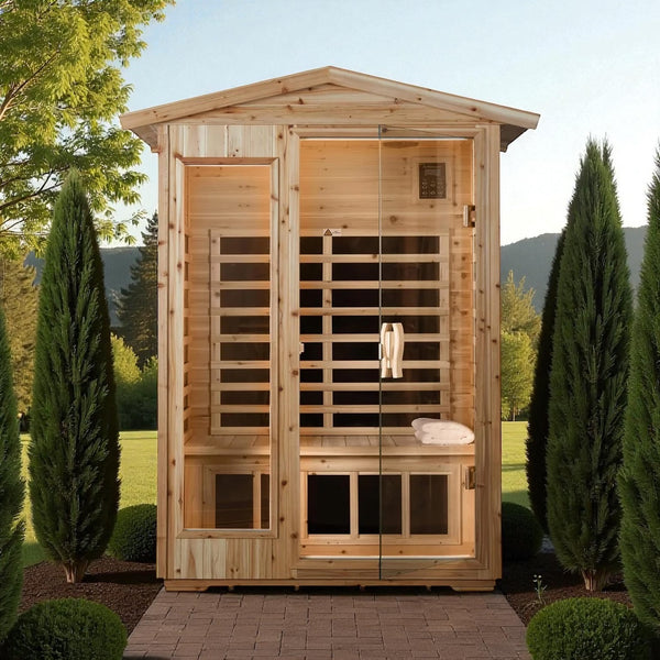 Luxury 2-Person Outdoor Low EMF Hemlock Infrared Sauna With Bluetooth And Chromotherapy Light (SAK97318)