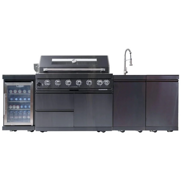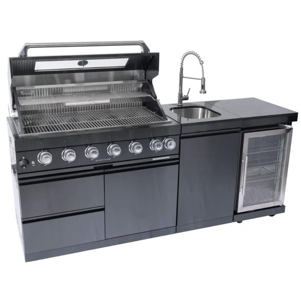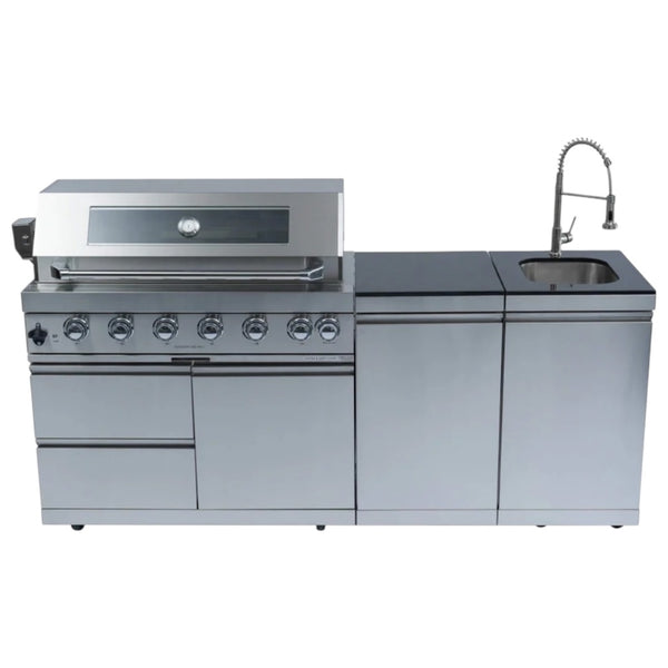 Castelle Flame 85K BTU Outdoor BBQ Kitchen Grill Island With 43-Inch 6-Burner Grill, Wine Fridge, Rotisserie Kit, And Sink (SAK23864)