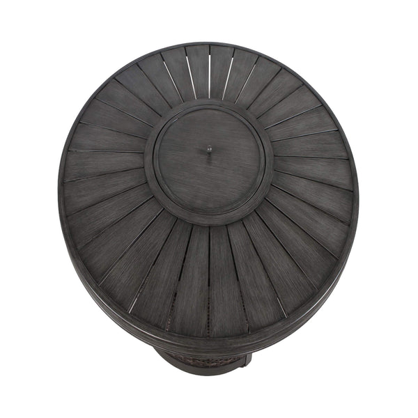 Black Aluminum Fire Table Bistro Set with Two Club Chairs