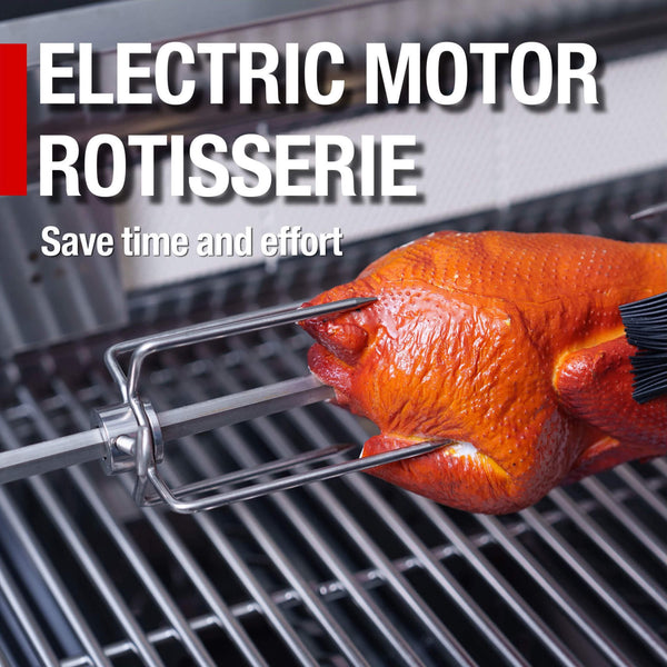 Castelle Flame Premium Black Stainless Steel 4-Burner Gas Grill With Rotisserie Kit (SAK48157)