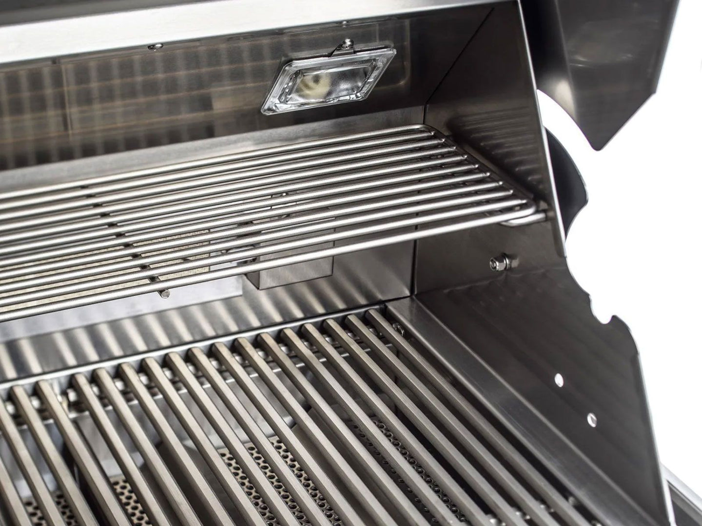 The Blaze LUX Series Grill comes with improved H burners delivering 18,000 BTU's per burner and 12mm thick hexagon shaped grill grates for maximum heat retention. All LUX series grills also come standard with LED illuminated control knobs, a 10,000 BTU infrared rear rotisserie burner and rotisserie kit. Heat zone separators enable you to create distinct temperature zones, perfect for multitasking across the grilling surface. The flame stabilizing grid further minimizes flare-ups while you enjoy your Blaze grill and the full-width drip tray makes clean up a breeze. Built to last and look great, the 304 stainless steel grill hood is double-lined to protect the outer layer from heat discoloration, keeping your Blaze grill looking shiny and new!