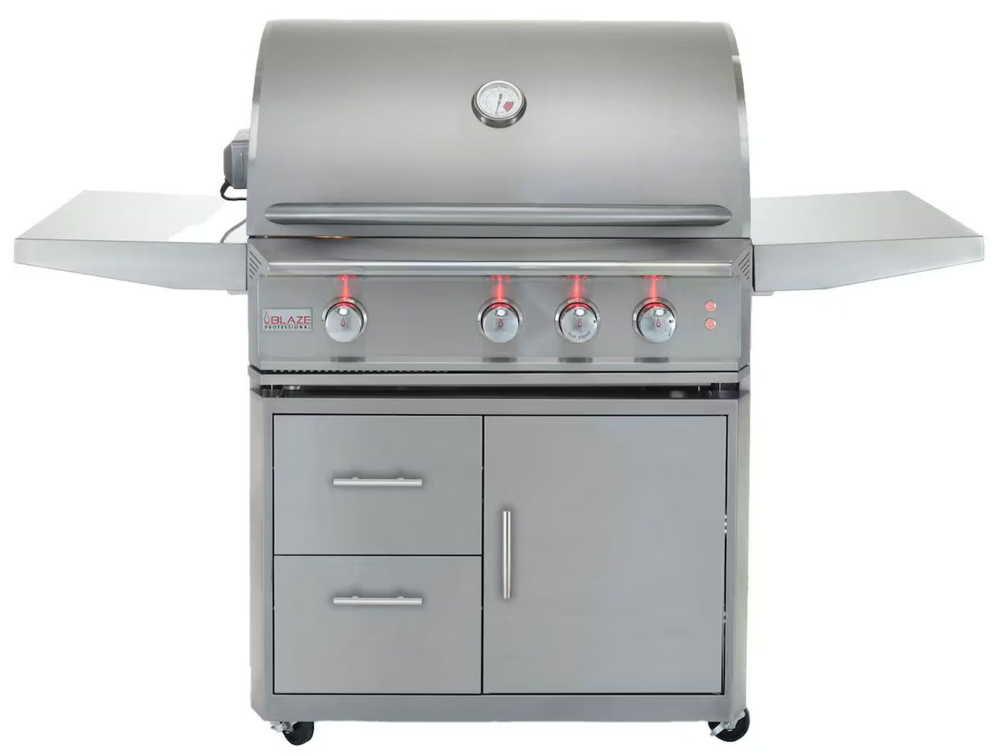 Blaze Premium LUX 34-Inch 3-Burner Freestanding Gas Grill with Infrared Rear Burner, LED Controls & Grill Lights - with Cart