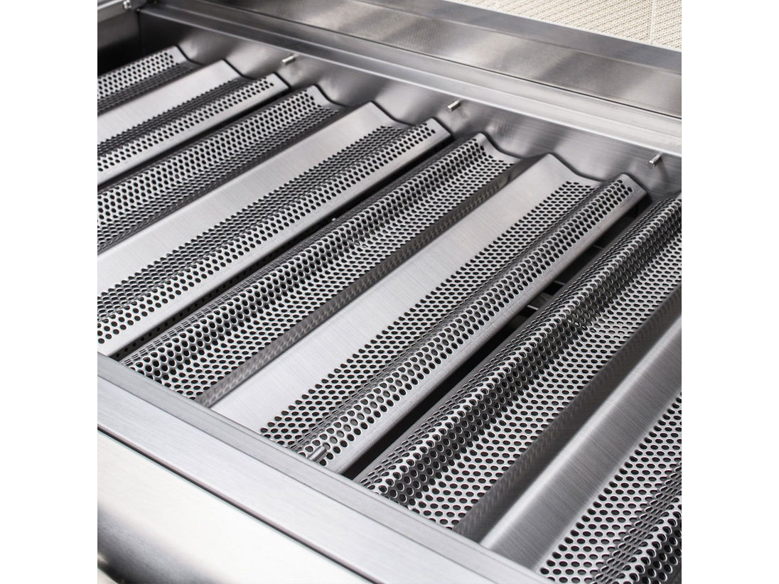 The Blaze Premium LTE+ Grill comes with additional engineering enhancements including a new improved interior lighting system and control knobs that change to red when in position. This model also includes a spring-assisted hood making the grill easier to open and close while delivering the same impressive features as the original Premium LTE model including: a 10,000 BTU infrared rear rotisserie burner and upgraded 9mm triangular stainless steel cooking grates, improving both searing and drip control for fewer flare ups. Heat zone separators enable you to create distinct temperature zones, perfect for multitasking across the grilling surface. The flame stabilizing grid further minimizes flare-ups while you enjoy your Blaze grill and the full-width drip tray makes clean up a breeze. Built to last and look great, the 304 stainless steel grill hood is double-lined to protect the outer layer from heat discoloration, keeping your Blaze grill looking shiny and new!