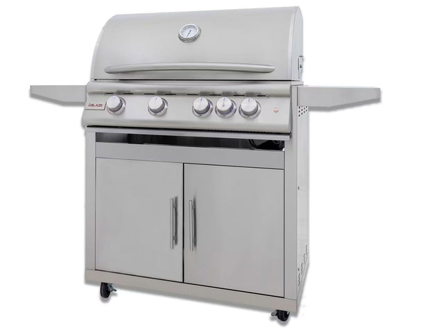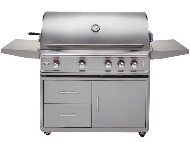 Blaze Premium LTE+ 40-Inch 5-Burner Freestanding Gas Grill with Infrared Rear Burner & Lift Assist Hood - with Cart