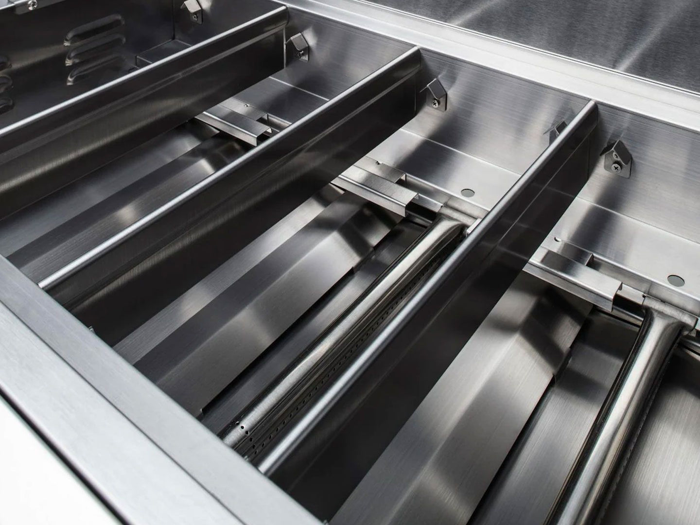 The Prelude LBM Grill is perfect for every level of griller. The durable searing rods enhance your grilling experience and allow you to sear steaks while preventing your vegetables from rolling away. Heat zone separators enable you to create distinct temperature zones, perfect for multitasking across the grilling surface. The flame stabilizing grid minimizes flare-ups while you enjoy your Blaze grill and the full-width drip tray makes clean up a breeze. Built to last and look great, the 304 stainless steel grill hood is double-lined to protect the outer layer from heat discoloration, keeping your Blaze grill looking shiny and new!