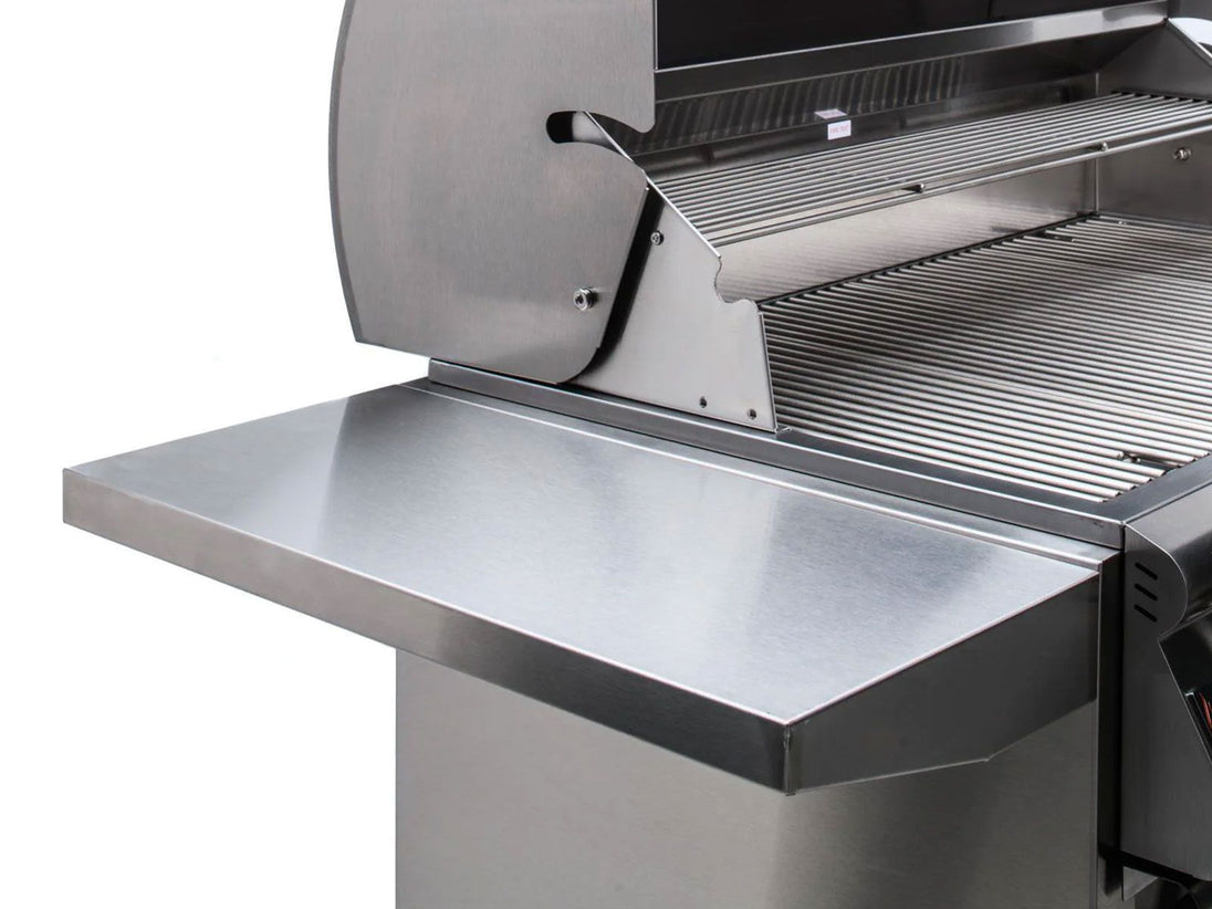The stainless steel grill cart features two front doors for storing your tank, grill cover and BBQ accessories. The cart also includes four heavy duty caster wheels, allowing you to relocate the grill easily whenever necessary, and two side shelves for a convenient work area.