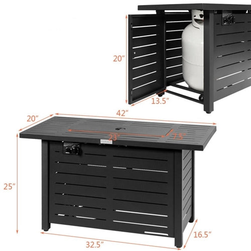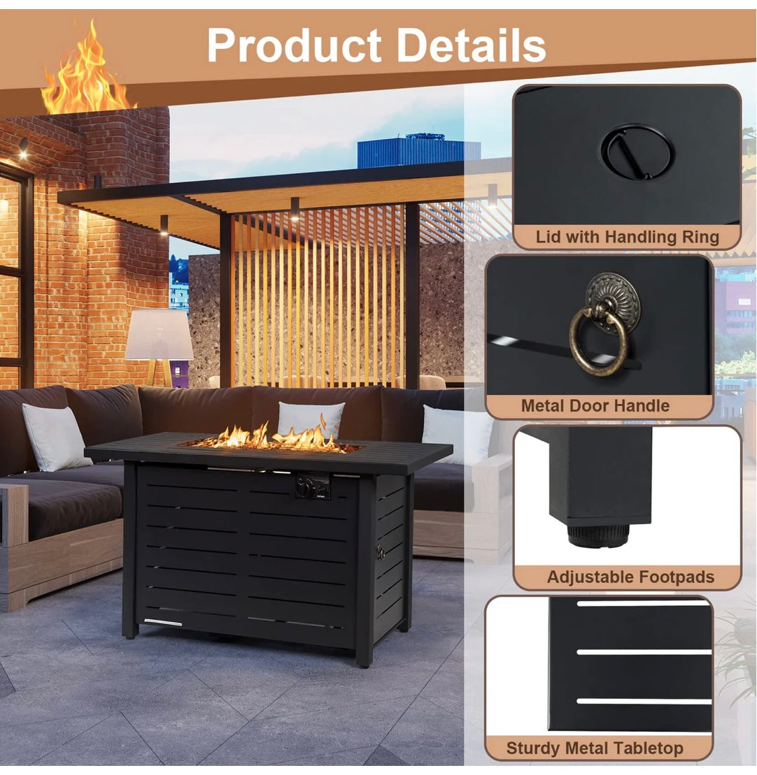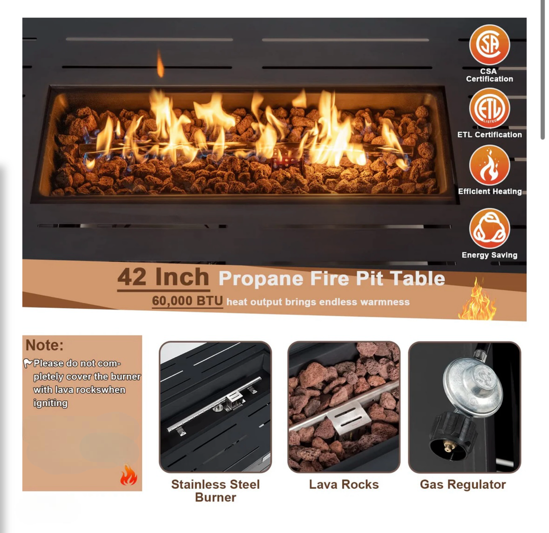 FREE Shipping over $99 in the U.S. lower 48 statesYour 42" Rectangular Outdoor Propane Gas Fire Pit Table with Lava Rocks and Lid will be packed and shipped within 1-3 business days and delivered to you between 5-10 business days.