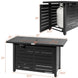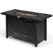 2-in-1 Fire Table Design: This gas fire pit with lid combines the warmth of a traditional fire pit with the practically and convenience of an outdoor table giving you the best of both worlds offering full time use year-round. Constructed of heavy-duty steel for durability and stability and a high-efficiency stainless steel burner delivering ample 60,000 BTU heat output. Built-in electric pulse ignition and control dial for simple lighting and adjusting of flame. Comes with a waterproof PVC cover for protection when not in use.