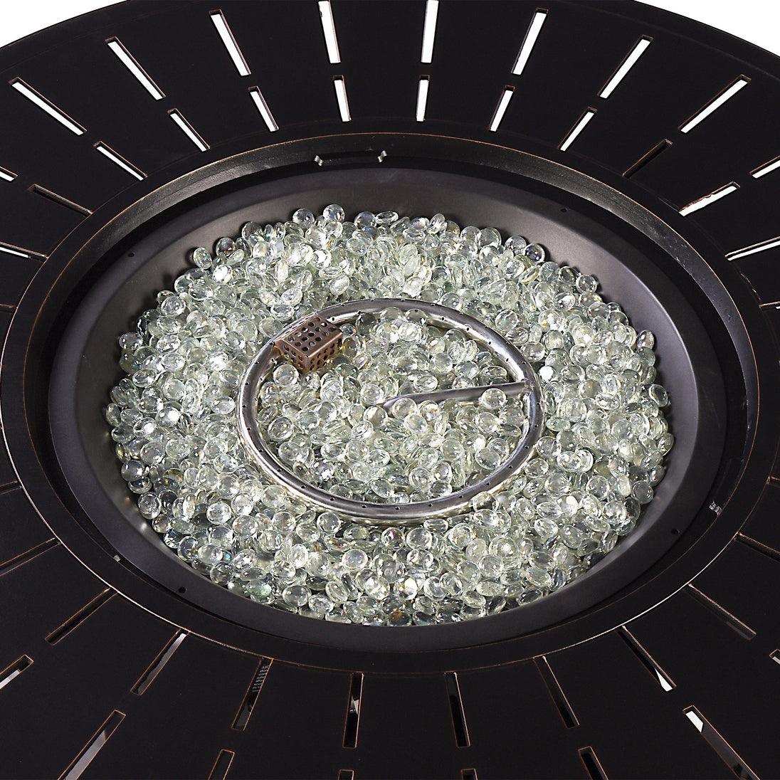 2. Durable Build: Crafted with a solid aluminum base, this fire pit is built to withstand the elements and provide long-lasting enjoyment. The choice of finishes adds a touch of sophistication to your outdoor space.