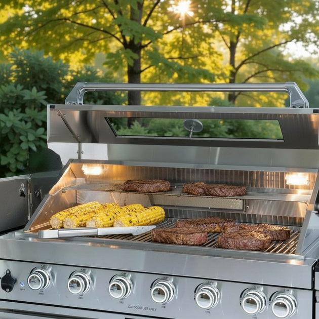 Castelle Flame Premium Black Stainless Steel 4-Burner Gas Grill With Rotisserie Kit (SAK48157)