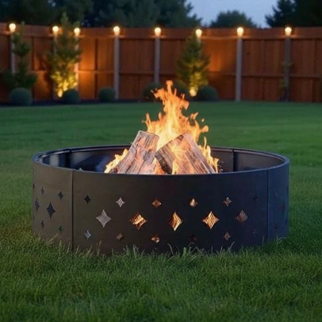 Heavy Duty 36-inch Black Steel Fire Pit Ring with Diamond Pattern