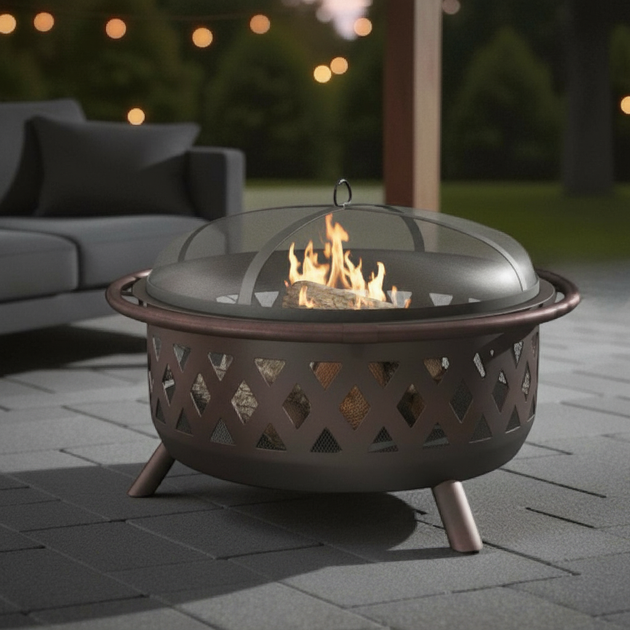 36-Inch Steel Wood Burning Fire Pit with Spark Screen
