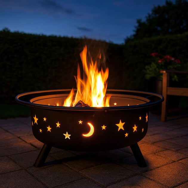 42-Inch Black Steel Wood Burning "Night Sky" Fire Pit with Spark Screen and Cover