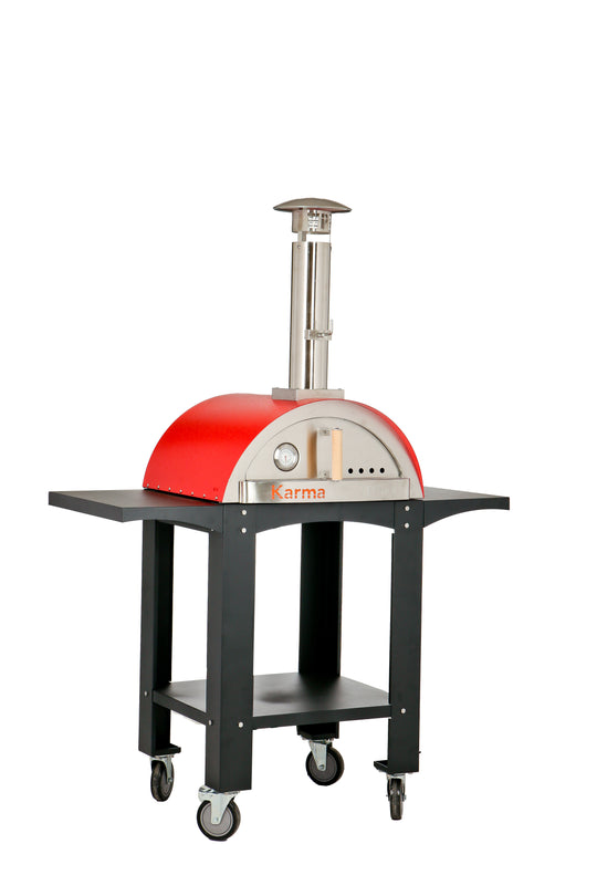 WPPO Karma 25-Inch "Red" Wood Fired Pizza Oven with Black Cart
