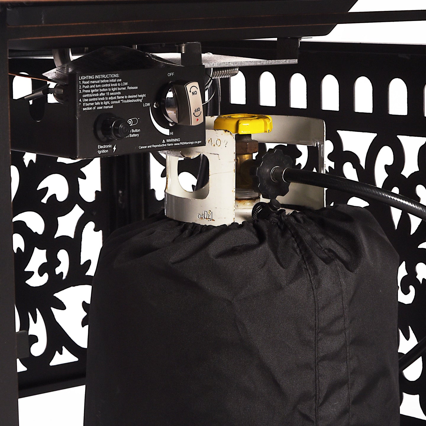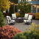 Introducing our outdoor fire table set with four deep seating swivel rocking chairs– the epitome of elegance and comfort for your outdoor living space. Crafted with meticulous attention to detail, this set seamlessly combines style and functionality to create the perfect ambiance for your gatherings. The centerpiece of this ensemble is the stunning fire table, designed to be the focal point of your outdoor entertainment area. Its aluminum construction ensures durability and longevity, while the antique copper finish adds a touch of timeless sophistication. Gather around the warm glow of the fire with friends and family, creating memorable moments under the open sky. The set includes four chairs, each meticulously crafted with a durable aluminum frame in an antique copper finish. The deep-seating design and plush light grey cushions provide unparalleled comfort, inviting you to relax and unwind in style. The cushions are not only luxuriously soft but also weather-resistant, ensuring they maintain their beauty despite the elements. Whether you're hosting a casual evening with friends or enjoying a quiet night under the stars, this fire table set is the perfect addition to elevate your outdoor experience. Create lasting memories and a cozy atmosphere with this exquisite combination of durable materials, stylish design, and functional innovation. Upgrade your outdoor space with our outdoor fire table set – where sophistication meets comfort, and every gathering becomes a cherished occasion.