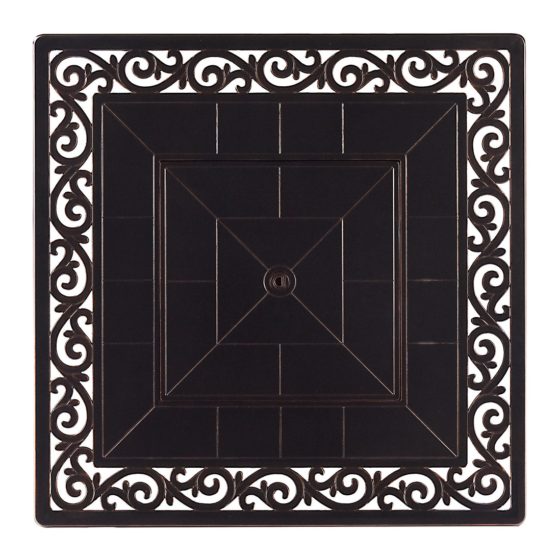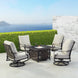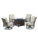 Black Aluminum 42" Fire Table Set with Four Club Chairs - Light Grey cushions