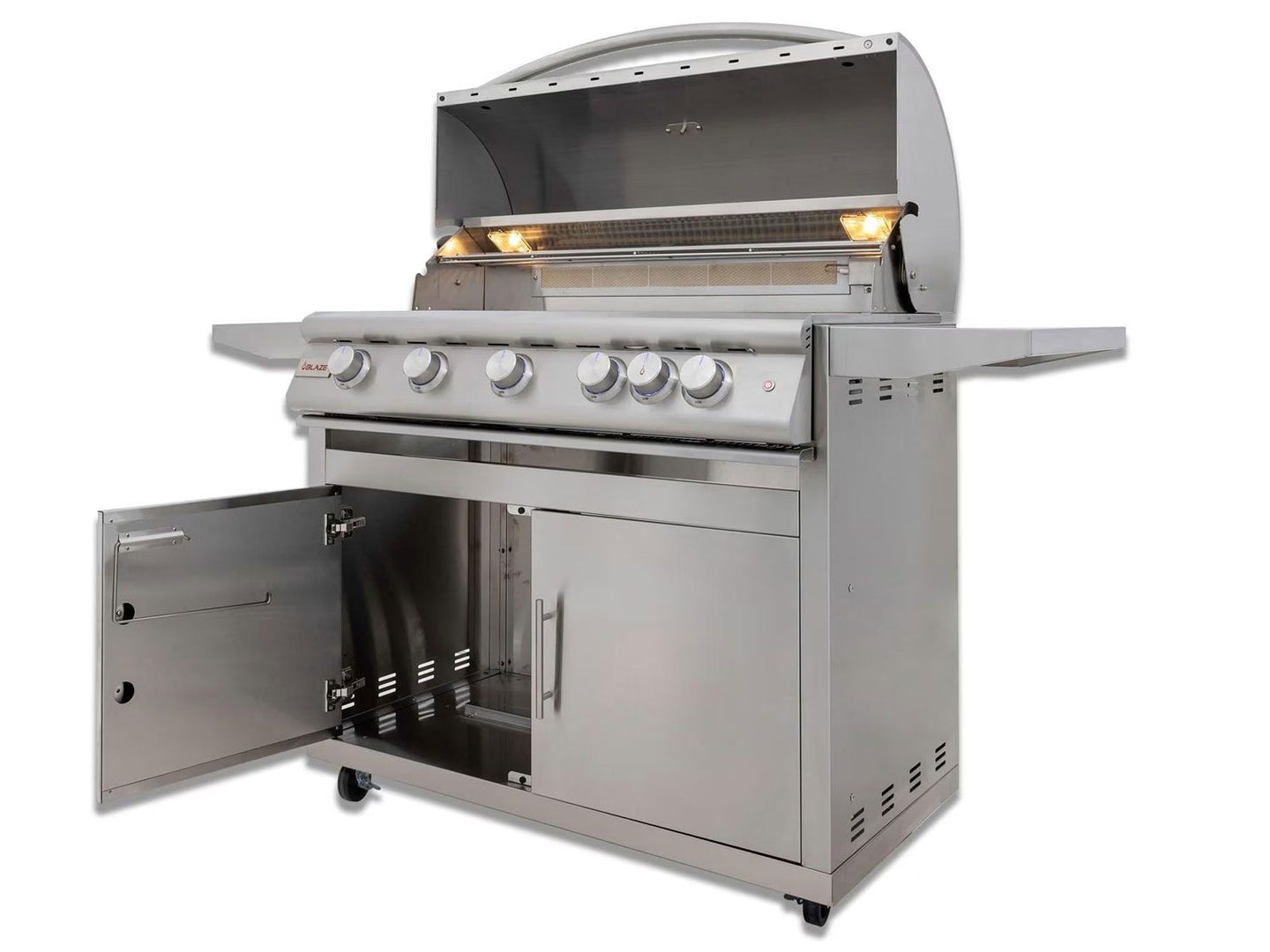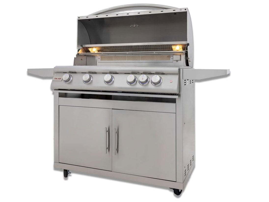 Blaze Premium LTE+ 40-Inch 5-Burner Freestanding Gas Grill with Infrared Rear Burner & Lift Assist Hood - with Cart