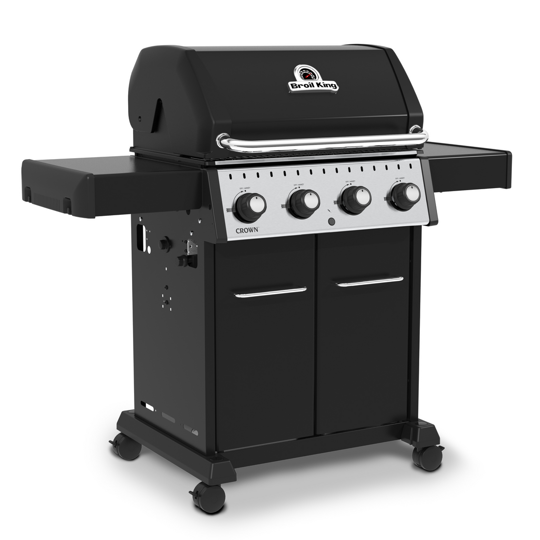 The Broil King® Crown™ 400 Series features 460 sq. in. primary cooking surface and includes a durable cast aluminum oven, 4 stainless steel Dual-Tube burners and electronic ignition.